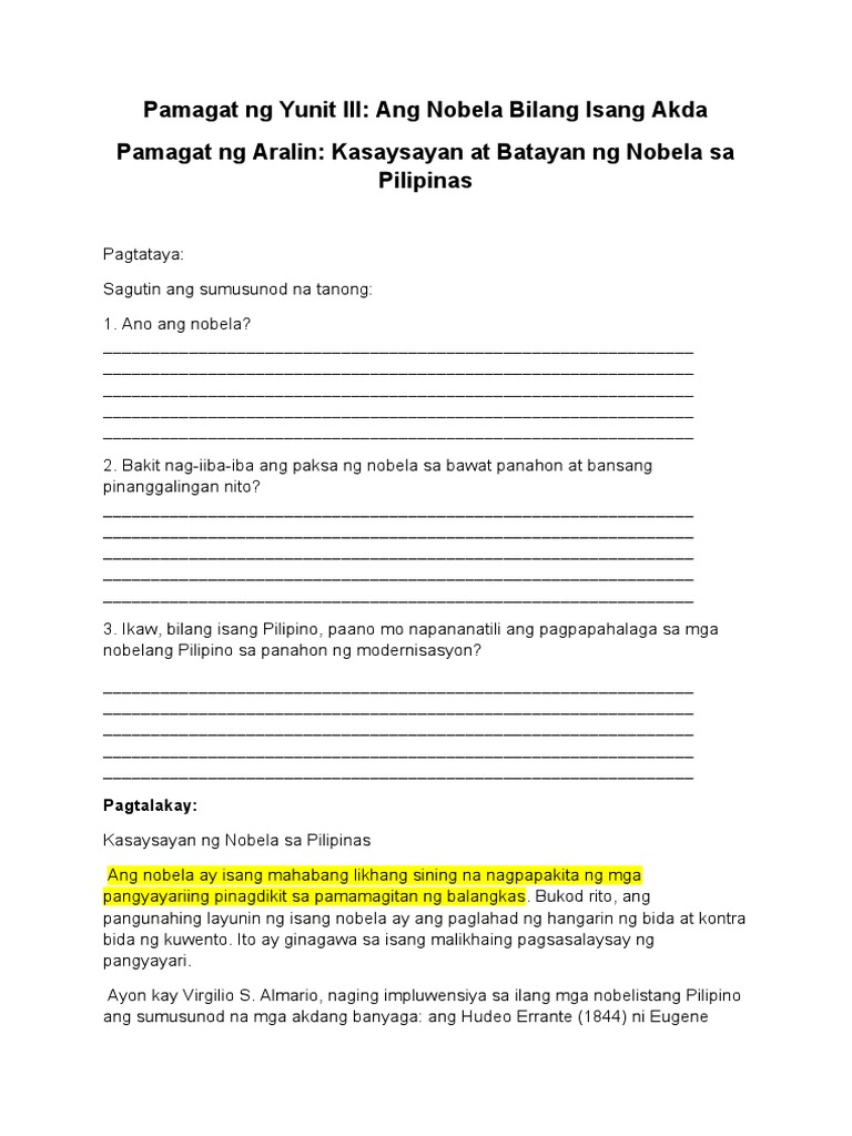 Upang maging mabuting bahagi at matibay na haligi ng lipunan kinakailangang magkaroon ng pagbabago sa ating sarili. Ipinaliwanag pa niya sa panahon ito nagsimulang makapasok sa Pilipinas nang lansakan ang ibat ibang uri ng genre ng panitikan at naging masigla ang pagsasalin sa wikang pambansa lalo na ng mga akdang klasika. Pagkuhaan ng kahulugan kung pag uusapan ang Pilipinas bilang isang nasyon.