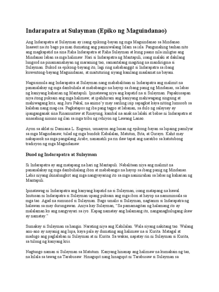 Indarapatra At Sulayman Epiko Ng Maguindanao Pdf